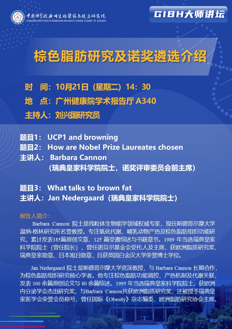 2025年10月21日大師講壇:棕色脂肪研究及諾獎(jiǎng)遴選介紹