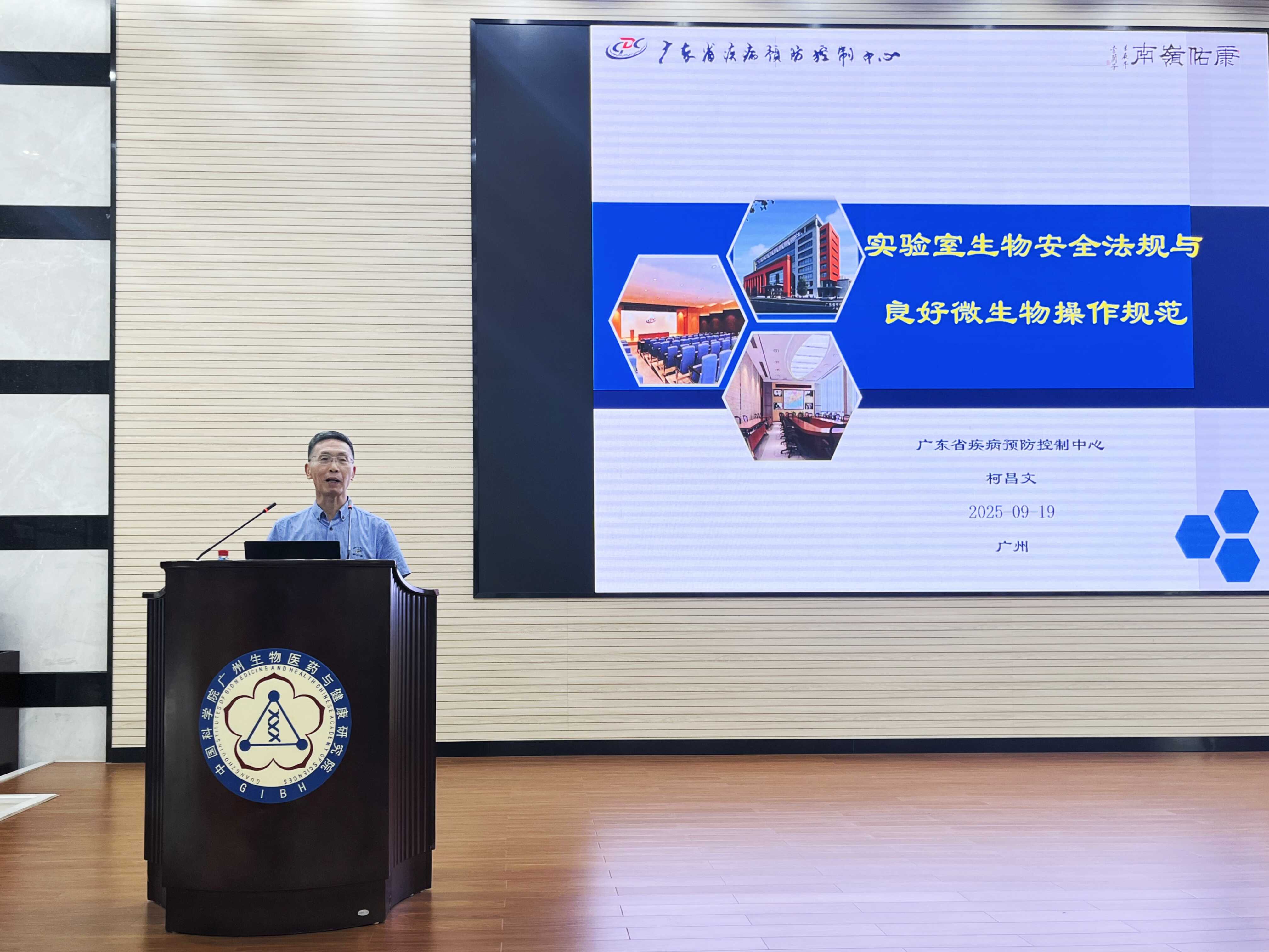 9月19日,中國科學(xué)院廣州生物醫(yī)藥與健康研究院(簡(jiǎn)稱 “廣州健康院”)舉辦“2025年度生物安全專題培訓(xùn)”,特邀廣東生物疾病預(yù)防與控制中心柯昌文教授主講。培訓(xùn)會(huì)由馮立強(qiáng)研究員主持,全院150余名師生參加。