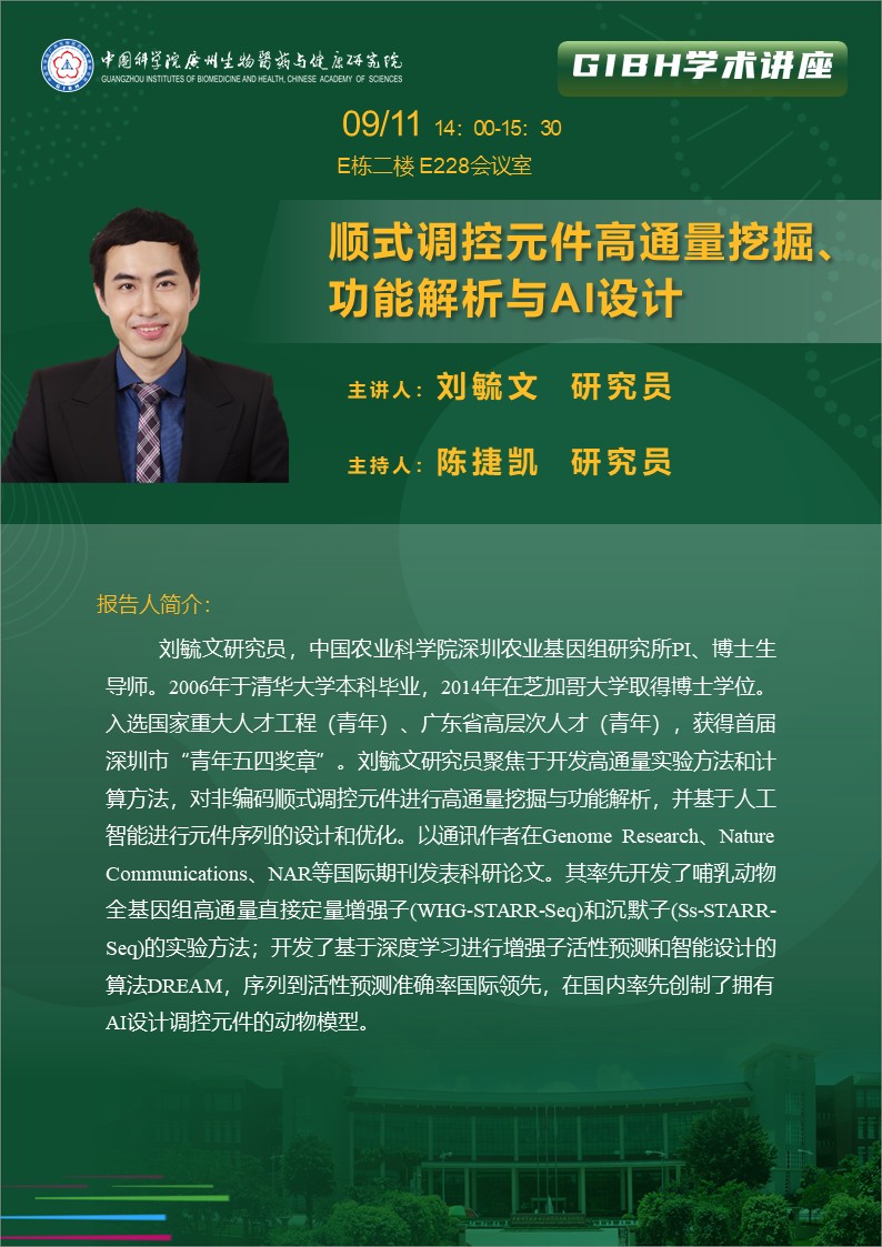 2025年9月11日學術講座: 順式調控元件高通量挖掘、功能解析與AI設計
