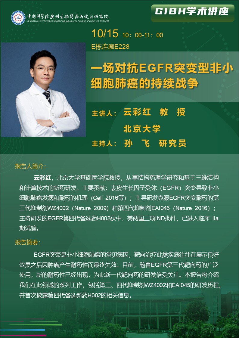 2025年10月15日學(xué)術(shù)講座: 一場對抗EGFR突變型非小細胞肺癌的持續(xù)戰(zhàn)爭