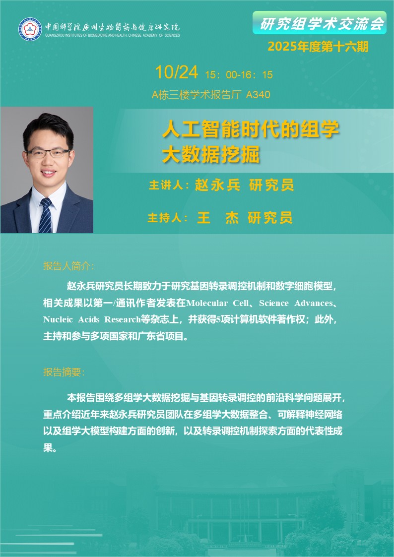 2025年10月24日研究組學(xué)術(shù)交流會(2025年度第十六期):人工智能時代的組學(xué)大數(shù)據(jù)挖掘