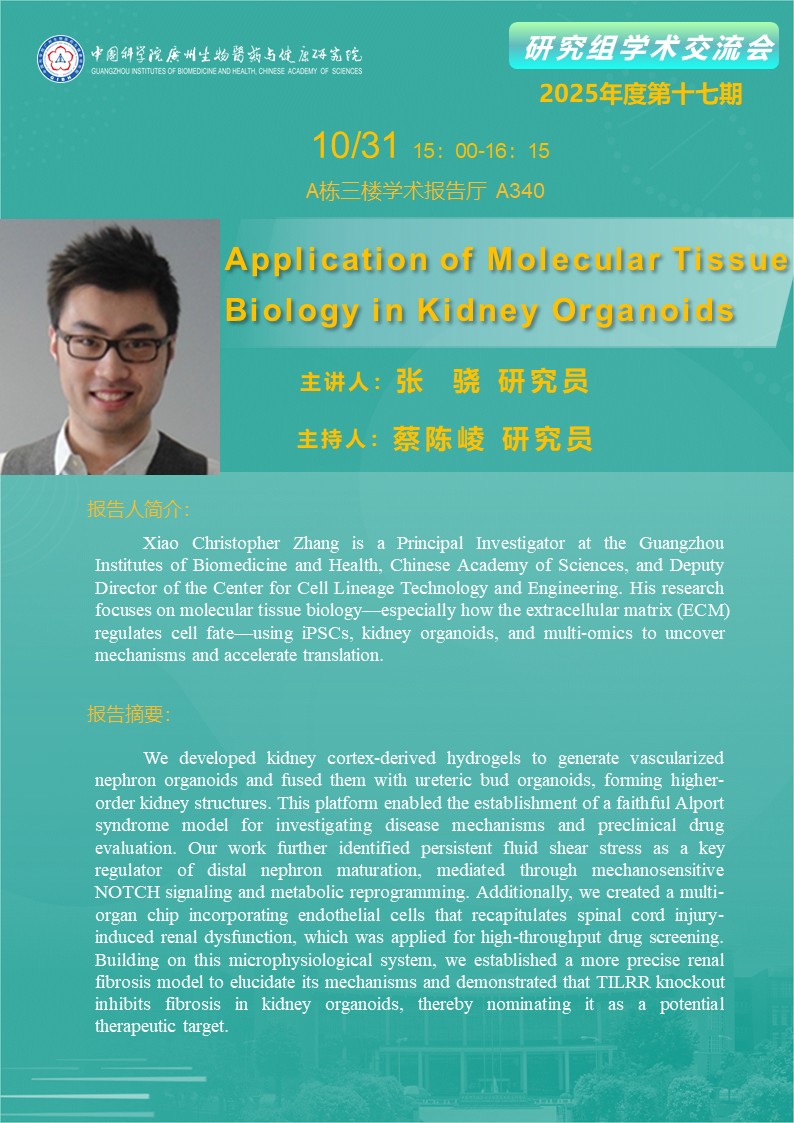 2025年10月31日研究組學術交流會(2025年度第十七期):Application of Molecular Tissue Biology in Kidney Organoids