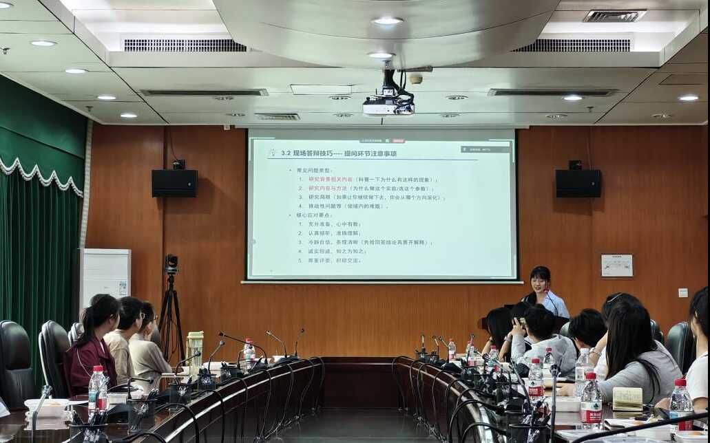 李菲以《制勝答辯,完美收官》為題,系統(tǒng)闡述了答辯PPT制作的關(guān)鍵要素與框架設(shè)計(jì)、匯報(bào)呈現(xiàn)及答辯提問應(yīng)對技巧。她特別強(qiáng)調(diào)答辯匯報(bào)中自信表達(dá)的重要性,并歸納了常見的提問類型,以及聚焦細(xì)節(jié)的圖表解讀、數(shù)據(jù)分析等具體問題。